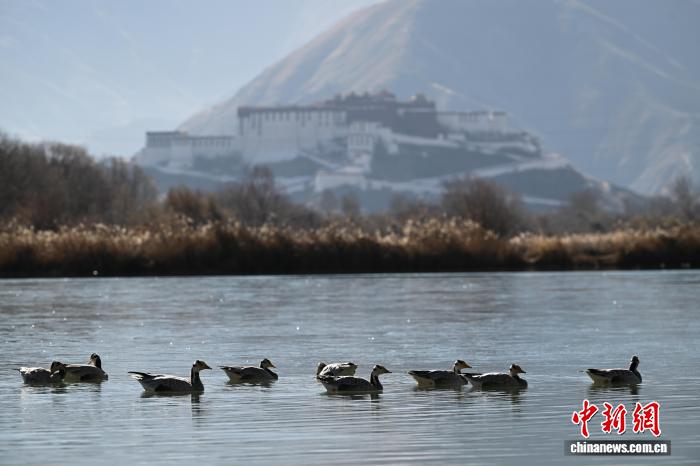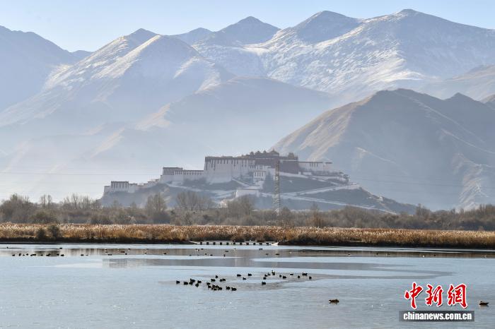 2025年12月9日,世界海拔最高的城市內(nèi)陸天然濕地——拉薩拉魯濕地國家級自然保護(hù)區(qū)盡顯冬日盛景。這片總面積12.2平方公里的“拉薩之肺”,初冬時節(jié)蘆葦泛金,赤麻鴨、斑頭雁等候鳥在此嬉戲覓食。遠(yuǎn)處布達(dá)拉宮巍然矗立,周邊雪山皚皚,自然生態(tài)與人文景觀交相輝映,構(gòu)成一幅兼具壯闊與靈動的高原畫卷,彰顯著拉薩人與自然和諧共生的生態(tài)之美。圖為拉薩市民在拉魯濕地晨練。中新社記者 貢嘎來松 攝