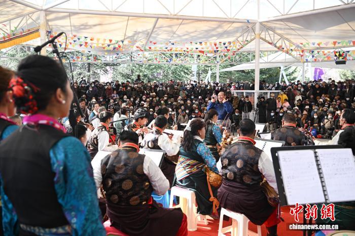 12月20日,為熱烈慶祝西藏自治區(qū)成立60周年,由西藏自治區(qū)文化和旅游廳主辦的格?;ㄑ莩黾尽履辍拔覀兊墓?jié)日 群星薈萃”群眾音樂會(huì)在拉薩宗角祿康公園精彩上演。音樂會(huì)節(jié)目豐富多樣,涵蓋民樂合奏、少兒藏戲、獨(dú)唱重唱等多種形式。傳統(tǒng)韻味與時(shí)代氣息交融,各族群眾以歡歌贊頌發(fā)展巨變,共迎美好新年。