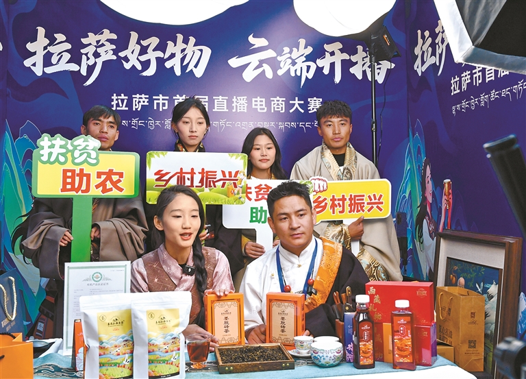 12月20日,由拉薩市商務(wù)局主辦,以“拉薩好物·云端開播”為主題的拉薩市首屆直播電商大賽決賽暨頒獎儀式在拉薩王府井購物中心舉行。經(jīng)過前期初賽選拔、賽前調(diào)研學(xué)習(xí)和集中交流,晉級的20名參賽選手同臺競技,通過直播實戰(zhàn)比拼,集中展示直播電商能力與拉薩特色產(chǎn)品的市場潛力,為期16天的大賽圓滿收官。整個賽事周期內(nèi),初賽與決賽累計帶貨總額達(dá)861萬余元。