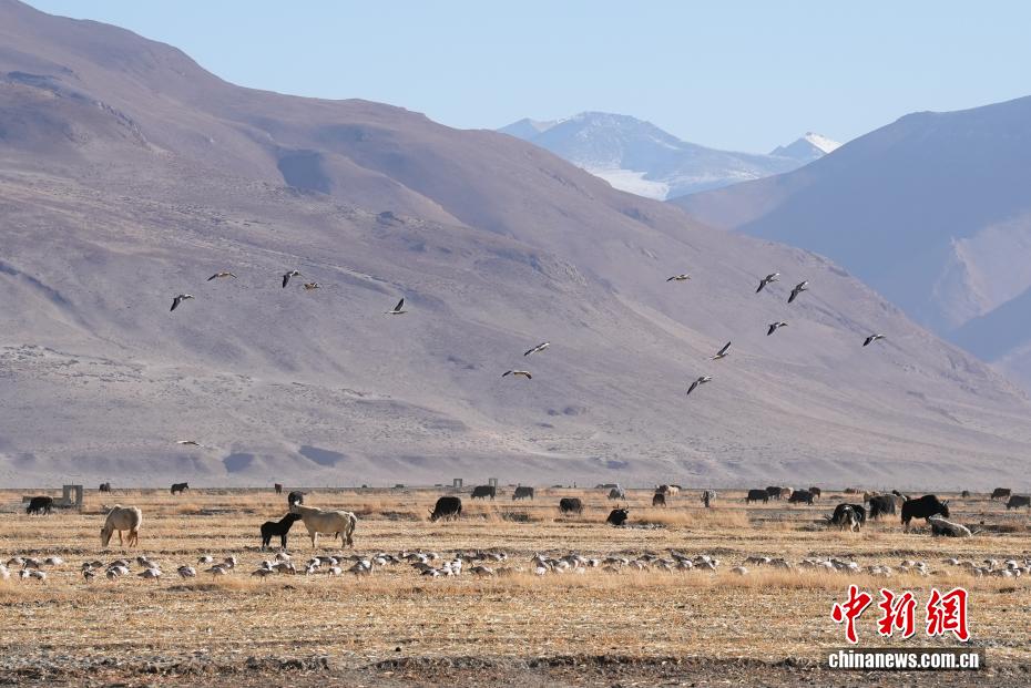 2025年1月7日,西藏定日發(fā)生6.8級地震,時隔近一年,12月24日,中新社記者探訪災后重建。日喀則森嘎村的藏式新房錯落有致,柏油路連通家家戶戶,屋頂太陽能熱水器整齊排列,炊煙裊裊間滿是生機。據(jù)悉,此次日喀則地震災后重建覆蓋7縣47鄉(xiāng)鎮(zhèn)486村,2.2萬余戶重建民房、1.05萬余戶維修加固民房已全部竣工交付,受災民眾喜遷新居。圖為森嘎村境內(nèi)的農(nóng)田里斑頭雁在覓食。中新社記者 貢嘎來松 攝