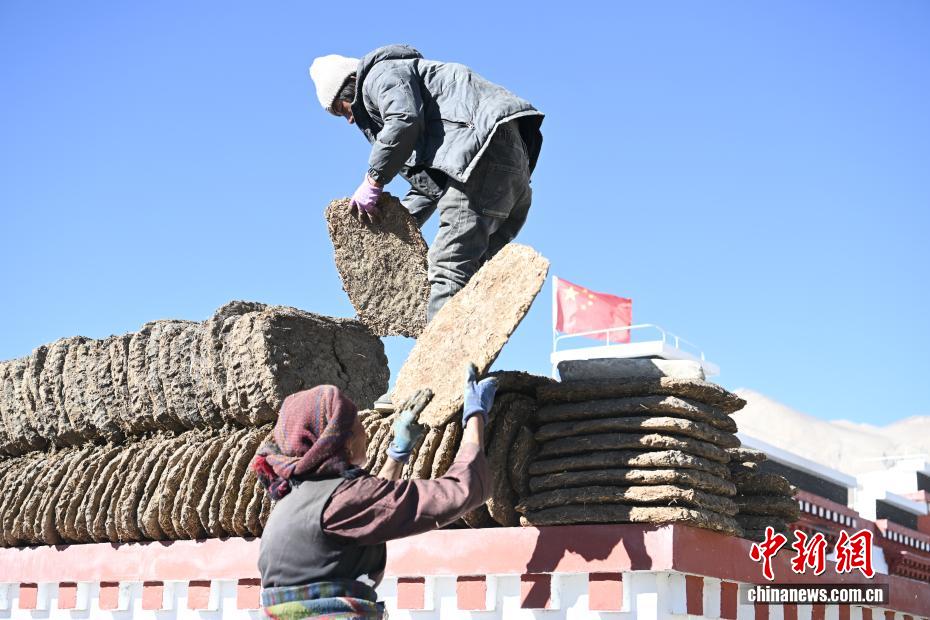 2025年1月7日,西藏定日發(fā)生6.8級地震,時隔近一年,12月24日,中新社記者探訪災后重建。日喀則森嘎村的藏式新房錯落有致,柏油路連通家家戶戶,屋頂太陽能熱水器整齊排列,炊煙裊裊間滿是生機。據(jù)悉,此次日喀則地震災后重建覆蓋7縣47鄉(xiāng)鎮(zhèn)486村,2.2萬余戶重建民房、1.05萬余戶維修加固民房已全部竣工交付,受災民眾喜遷新居。圖為重建后的森嘎村村民在自家的新房圍墻上擺放干牛糞。中新社記者 貢嘎來松 攝