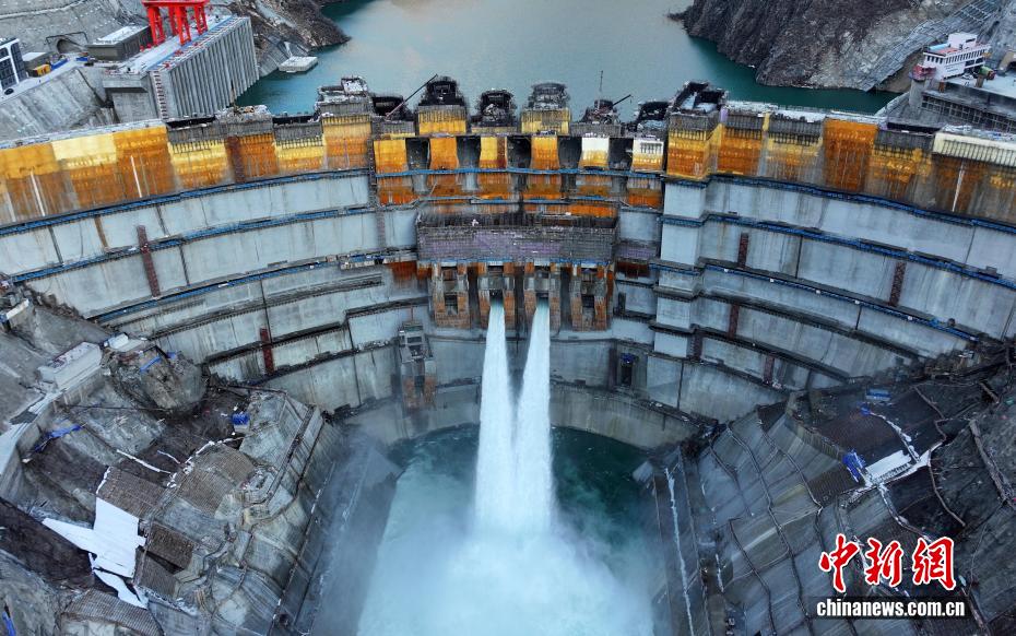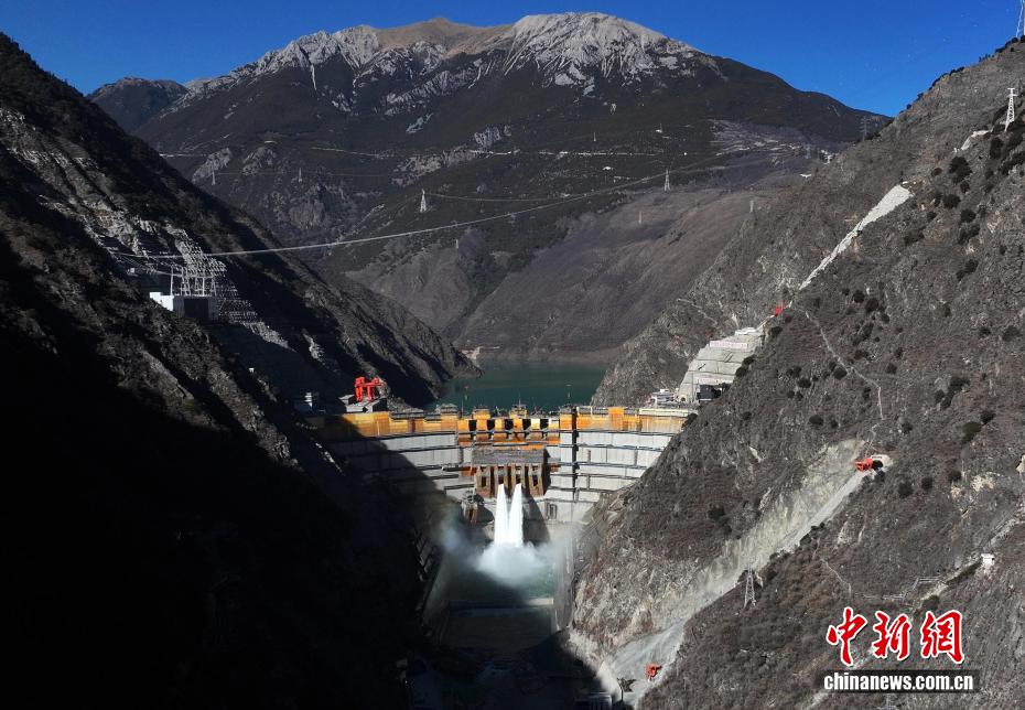12月27日,中國在建海拔最高雙曲拱壩電站——葉巴灘水電站首批機(jī)組正式投產(chǎn)發(fā)電。葉巴灘水電站位于四川省甘孜州白玉縣與西藏自治區(qū)貢覺縣交界的金沙江干流上。水電站總裝機(jī)容量224萬千瓦,此次首批投產(chǎn)發(fā)電的機(jī)組為4號和3號機(jī)組。圖為12月26日,航拍葉巴灘水電站外景。(無人機(jī)照片)中新社記者 王磊 攝