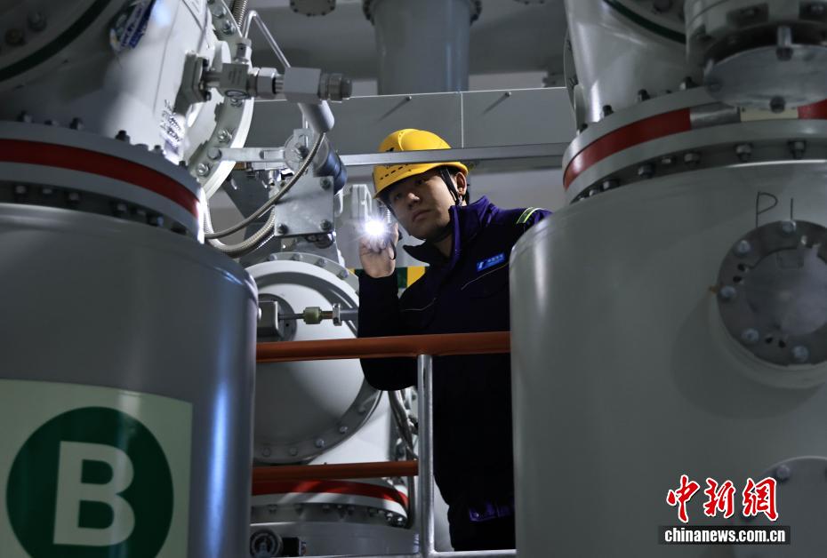 12月27日,中國在建海拔最高雙曲拱壩電站——葉巴灘水電站首批機(jī)組正式投產(chǎn)發(fā)電。葉巴灘水電站位于四川省甘孜州白玉縣與西藏自治區(qū)貢覺縣交界的金沙江干流上。水電站總裝機(jī)容量224萬千瓦,此次首批投產(chǎn)發(fā)電的機(jī)組為4號和3號機(jī)組。圖為12月24日,值班員在GIS巡視檢查。中新社記者 王磊 攝