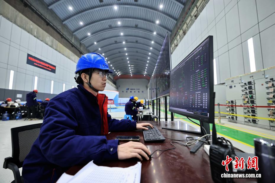 12月27日,中國在建海拔最高雙曲拱壩電站——葉巴灘水電站首批機(jī)組正式投產(chǎn)發(fā)電。葉巴灘水電站位于四川省甘孜州白玉縣與西藏自治區(qū)貢覺縣交界的金沙江干流上。水電站總裝機(jī)容量224萬千瓦,此次首批投產(chǎn)發(fā)電的機(jī)組為4號和3號機(jī)組。圖為12月24日,中控室值班人員正開展上位機(jī)監(jiān)盤工作。中新社記者 王磊 攝