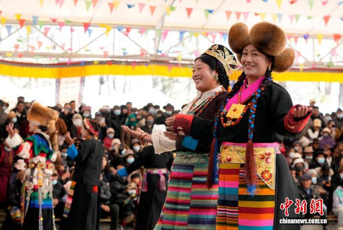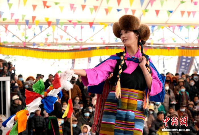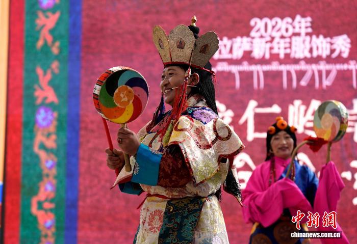 1月2日,“新歲風(fēng)華,衣彩拉薩”2026年拉薩新年服飾秀子活動在布達拉宮腳下的宗角祿康公園舉行?;顒臃譃槔_非物質(zhì)文化遺產(chǎn)代表性項目演藝服飾秀與農(nóng)牧民婦女“村T”秀兩部分,通過演藝服飾與日常生活勞動服飾及場景的展示,生動呈現(xiàn)拉薩獨特的地域文化與民族風(fēng)情。圖為拉薩非物質(zhì)文化遺產(chǎn)代表性項目演藝服飾秀現(xiàn)場。中新社記者 李林 攝