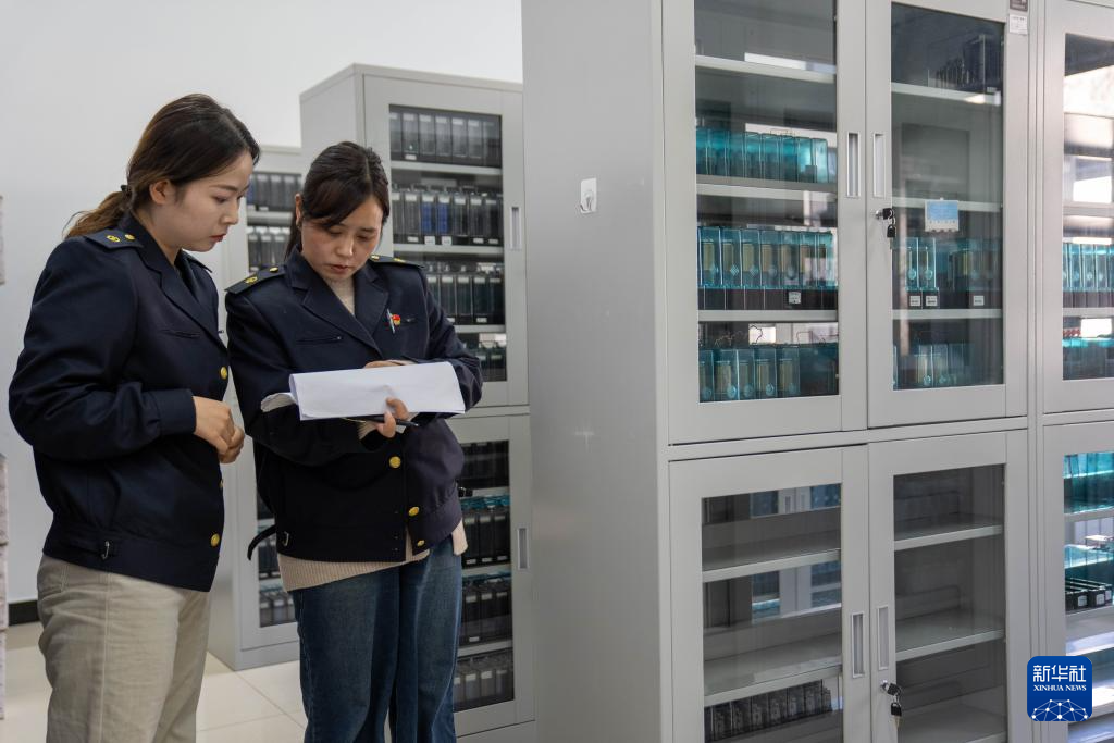 1月6日,拉薩基礎(chǔ)設(shè)施段電務(wù)專修車間繼電器檢修工區(qū)的信號工路東燕(左)和德吉卓瑪在檢查繼電器庫房臺賬。新華社記者 旦增尼瑪曲珠 攝