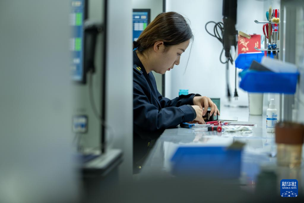 1月6日,拉薩基礎(chǔ)設(shè)施段電務(wù)專修車間繼電器檢修工區(qū)的信號工德吉卓瑪在檢測繼電器。新華社記者 旦增尼瑪曲珠 攝