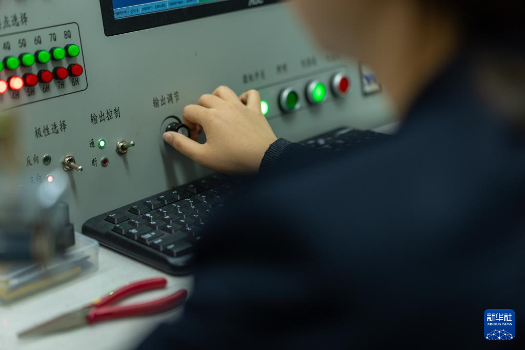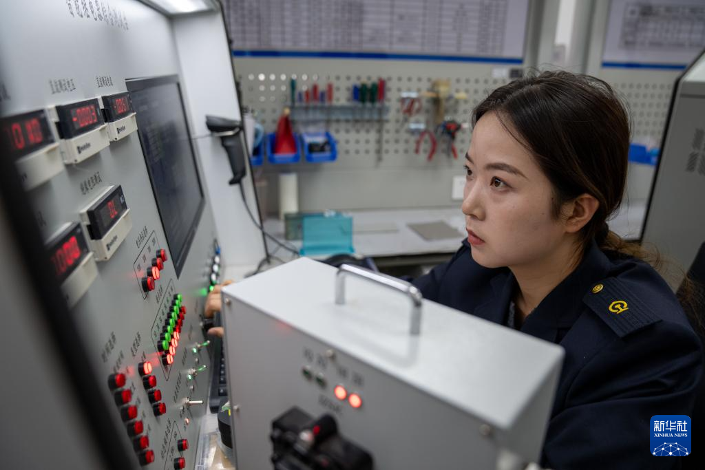 1月6日,拉薩基礎(chǔ)設(shè)施段電務(wù)專修車間繼電器檢修工區(qū)的信號工路東燕在調(diào)試檢測臺。新華社記者 旦增尼瑪曲珠 攝