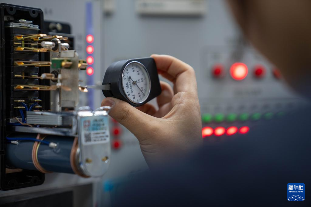 1月6日,拉薩基礎(chǔ)設(shè)施段電務(wù)專修車間繼電器檢修工區(qū)的信號工丁增央金在測試繼電器節(jié)點壓力。新華社記者 旦增尼瑪曲珠 攝
