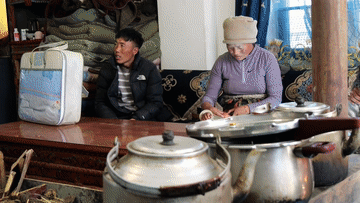 1月5日,在西藏定日縣長所鄉(xiāng)雜村,母親朋瓊在家中逗弄次仁拉巴。新華社記者 姜帆 攝