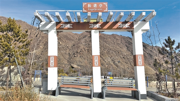 圖為哲蚌寺民族團(tuán)結(jié)主題公園的和諧亭。記者 盧文靜 攝