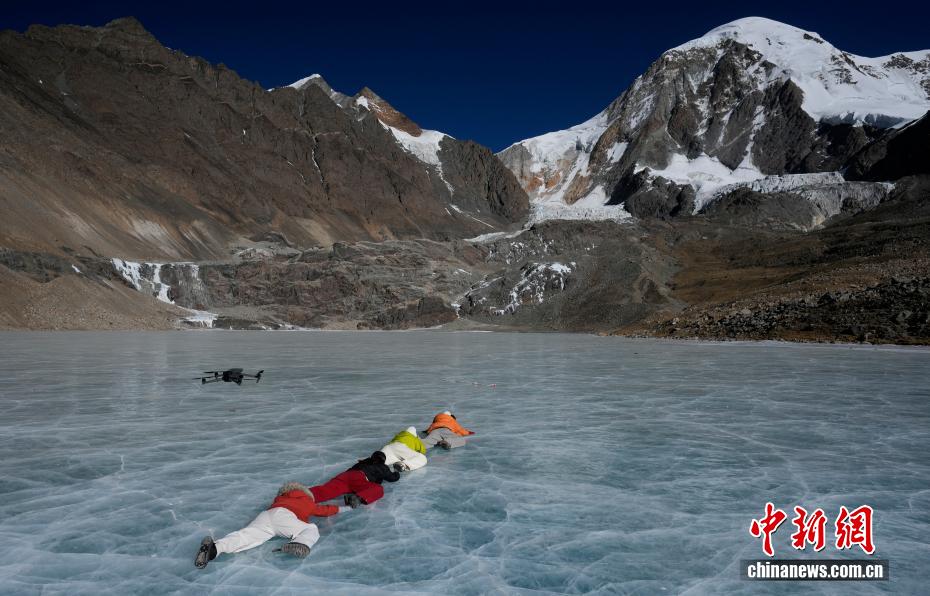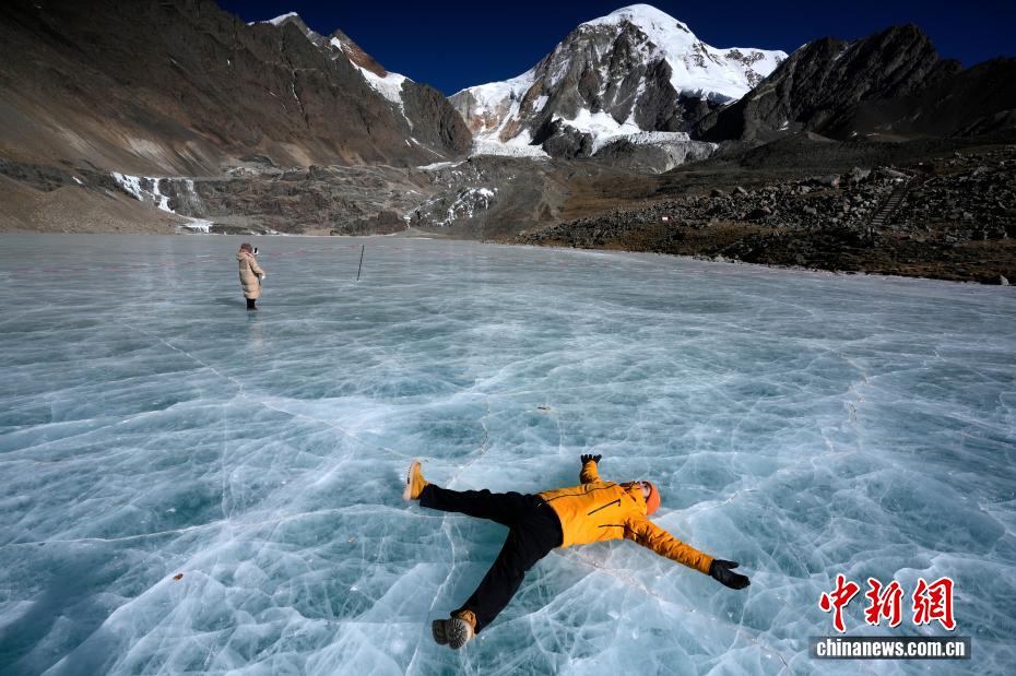 1月16日,游客在瓊穆崗嘎雪山腳下的冰湖拍照。矗立于西藏拉薩市尼木縣麻江鄉(xiāng)的瓊穆崗嘎雪山,海拔7048米。受冬季寒冷天氣影響,瓊穆崗嘎雪山腳下的湖泊結(jié)冰,雪山冰湖交相輝映,吸引游客前來游玩、觀賞。中新社記者 李林 攝