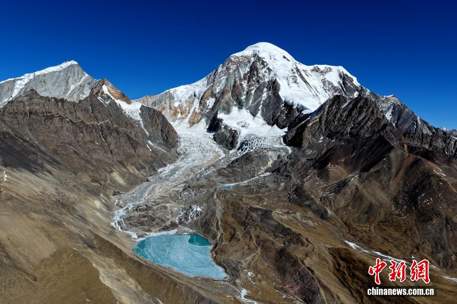 1月16日,瓊穆崗嘎雪山景色。矗立于西藏拉薩市尼木縣麻江鄉(xiāng)的瓊穆崗嘎雪山,海拔7048米。受冬季寒冷天氣影響,瓊穆崗嘎雪山腳下的湖泊結(jié)冰,雪山冰湖交相輝映,景色壯麗。中新社記者 李林 攝