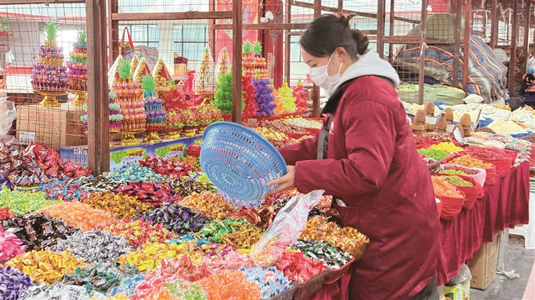 據(jù)悉,本次八廓商城年貨節(jié)自1月14日啟動(dòng),將持續(xù)至2月16日13時(shí)。目前,該商城日均人流量達(dá) 5000人次,預(yù)計(jì)一周后將迎來客流高峰。本次年貨節(jié)還吸引了青海、新疆等地的特色商戶入駐,他們帶來的茶葉、區(qū)外特色糖果等商品,為雪域年貨市場(chǎng)增添了別樣風(fēng)情,讓當(dāng)?shù)匕傩赵诓少?gòu)傳統(tǒng)年貨的同時(shí),也能領(lǐng)略到不同地區(qū)的文化魅力。
