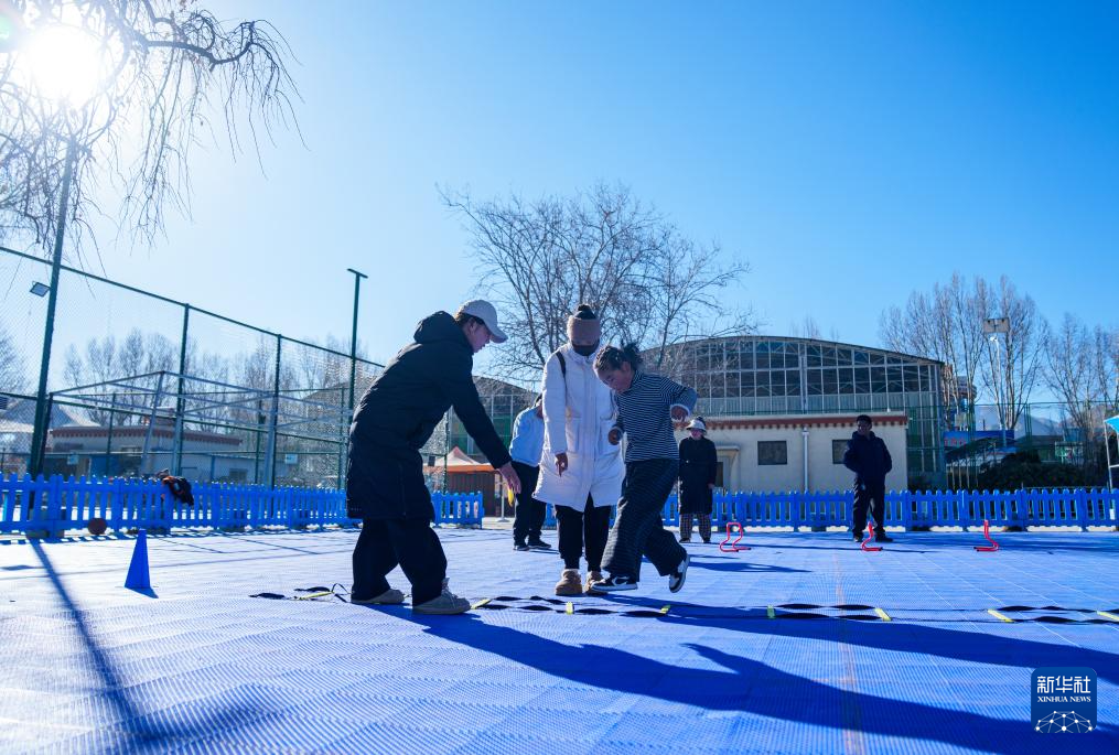 1月22日,在拉薩市全民健身體彩公園內(nèi),殘障兒童在家長陪同下參加“陽光殘障兒童公益興趣班”體適能訓(xùn)練課程。新華社記者 丁增尼達 攝