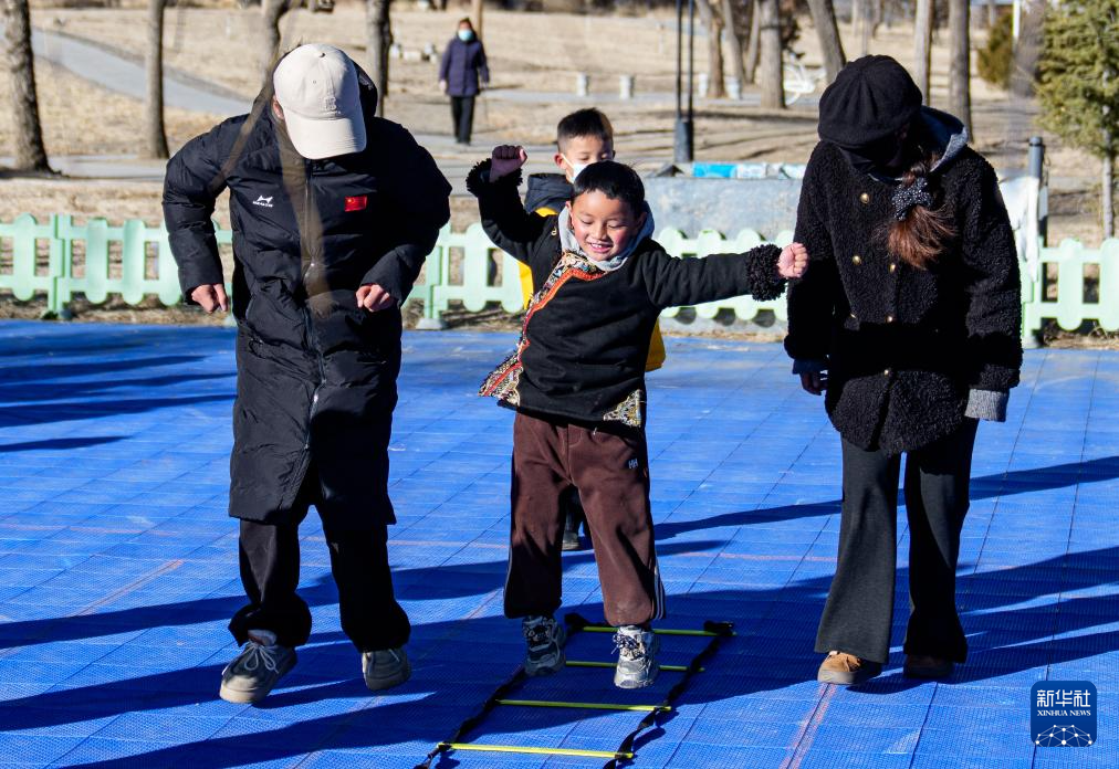 1月22日,殘障兒童在拉薩市全民健身體彩公園內(nèi)參加“陽光殘障兒童公益興趣班”體適能訓(xùn)練課程。新華社記者 丁增尼達 攝
