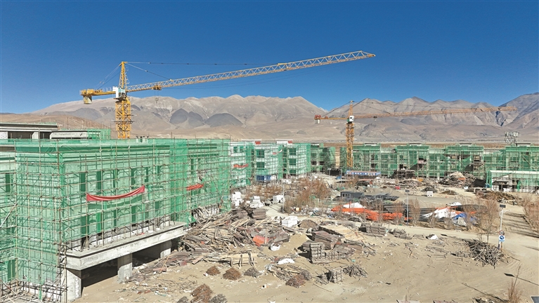 圖為定日縣長所鄉(xiāng)完全小學重建現(xiàn)場。記者 馬曉艷 楊子彥 旦增嘎瓦 攝