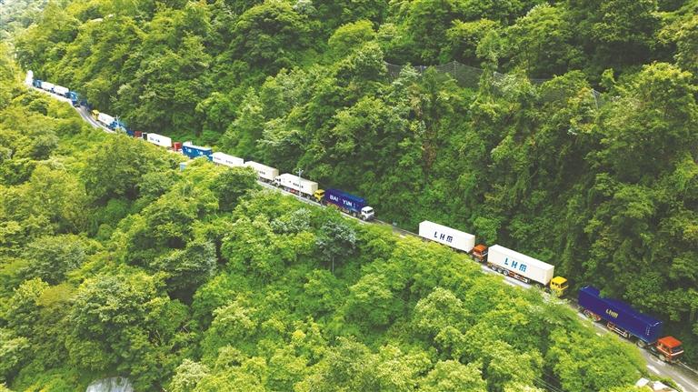 滿(mǎn)載出口貨物的車(chē)輛有序候檢。通訊員 蔣美靈 攝