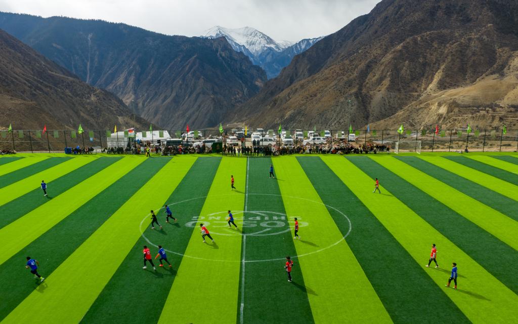 夢(mèng)想終有回響。2024年,洛隆縣與對(duì)口支援企業(yè)中國(guó)遠(yuǎn)洋海運(yùn)集團(tuán)一道在土球場(chǎng)附近,投資200余萬(wàn)元建成一座占地8000余平方米的11人制標(biāo)準(zhǔn)足球場(chǎng),當(dāng)年12月順利竣工,被當(dāng)?shù)厝擞H切喚作“云上球場(chǎng)”。
