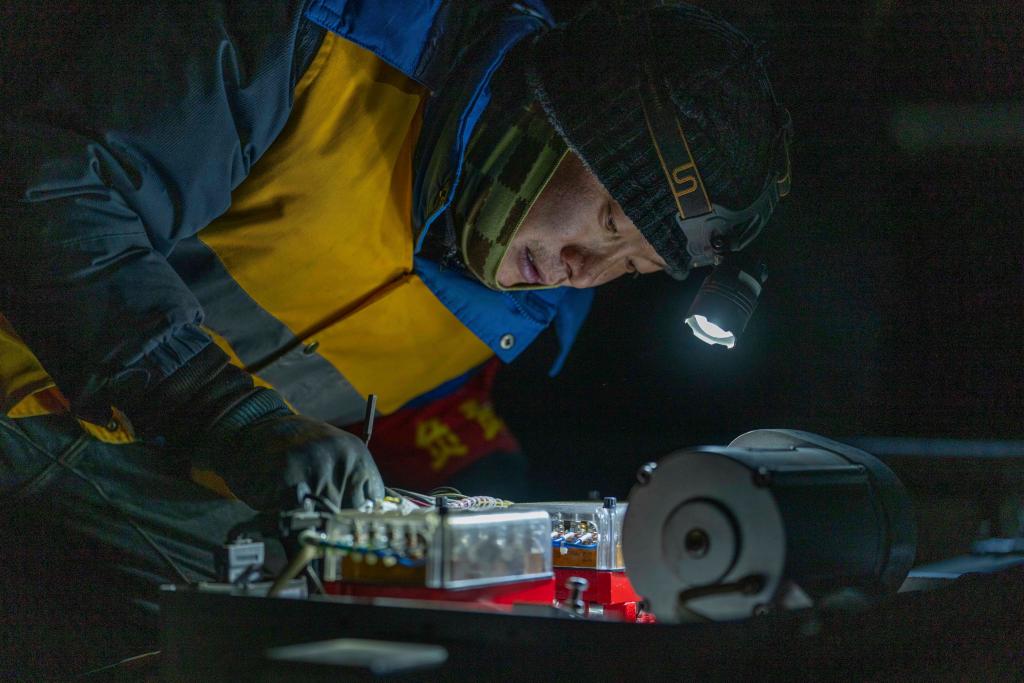 “先確認斷路器狀態(tài)?!蓖醺簧攵自谒碗姸讼浜星?,凍得發(fā)紫的手緩緩打開電纜盒。成格樂的頭燈照亮箱盒內(nèi)密密麻麻的端子排,他用內(nèi)六角扳手將早已斷裂的小枕木和銹蝕的過軌卡扣逐一取下。王富生隨即將新的箱盒引接線安裝固定好。