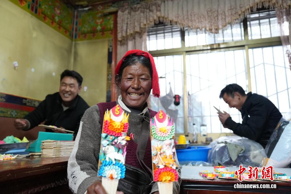 2月4日,隨著藏歷新年臨近,拉薩街頭年味漸濃,年貨市場(chǎng)上的“孜扎”迎來(lái)熱銷。酥油花藏語(yǔ)稱“孜扎”,是藏歷新年吉祥物切瑪盒的重要組件,也是藏族民眾家中必備的年貨。酥油花以酥油為主要原料,由匠人純手工捏制而成,造型涵蓋佛像、人物、花卉樹(shù)木、飛禽走獸等,常見(jiàn)圖案包含吉祥八寶、和諧四瑞、長(zhǎng)壽圖等,承載著藏族民眾對(duì)新年平安吉祥、萬(wàn)事順?biāo)斓拿篮闷碓?。圖為手工藝人展示制作完成的酥油花。貢確 攝