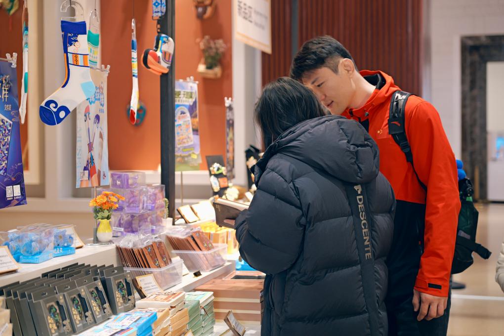 游客在西藏博物館挑選文創(chuàng)產(chǎn)品。新華社記者 周昱龍 攝