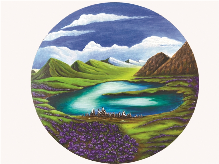 唐瑟達娃的藝術(shù)旅程,從父親繪制的藏柜旁出發(fā),穿越江南的煙雨與拉薩的日光,深入傳統(tǒng)繪畫藝術(shù)的博大精深,最終又回歸到高原的群山、江河與普通人的笑臉上。這位“清澈的明月”,依然在屬于她的藝術(shù)道路上從容行走。她的目光清澈,腳步堅定,用那支蘸滿了生活色彩與生命熱情的畫筆繼續(xù)歌唱,歌唱她眼中那個真實、生動、和美的西藏。