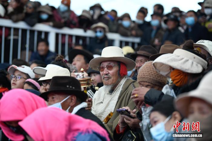 圖為拉薩市民在觀看文藝表演。中新社記者 貢嘎來松 攝