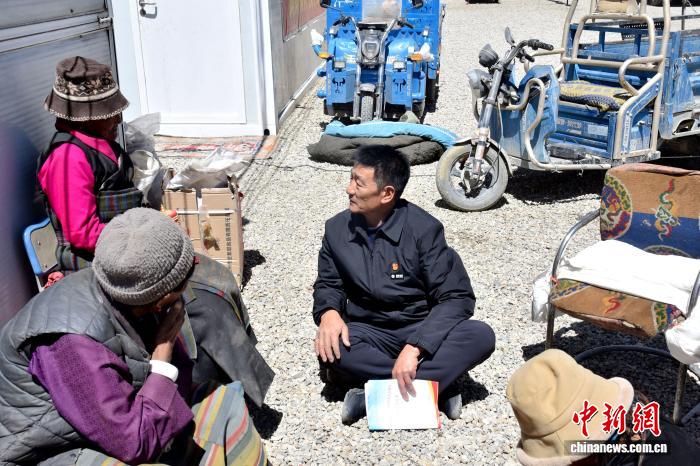 2025年3月21日,扎西尼瑪在日喀則市定日縣長所鄉(xiāng)安置點向受災(zāi)群眾宣講兩會精神。(資料圖) 拉薩供電公司 供圖