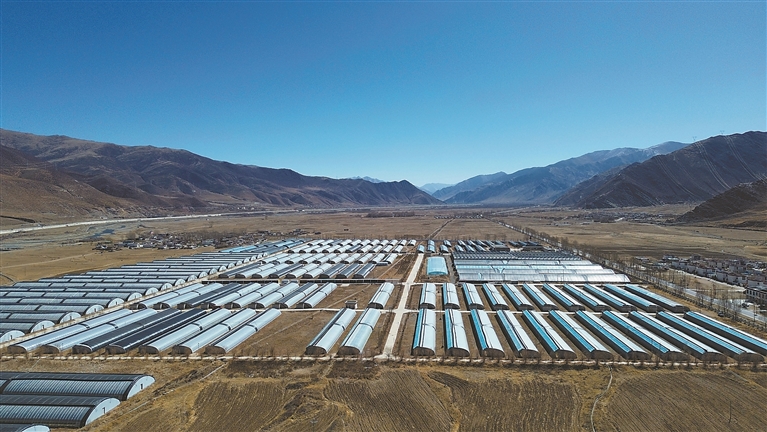 圖為3月8日拍攝的墨竹工卡縣現(xiàn)代農(nóng)業(yè)示范園(無人機(jī)照片)。