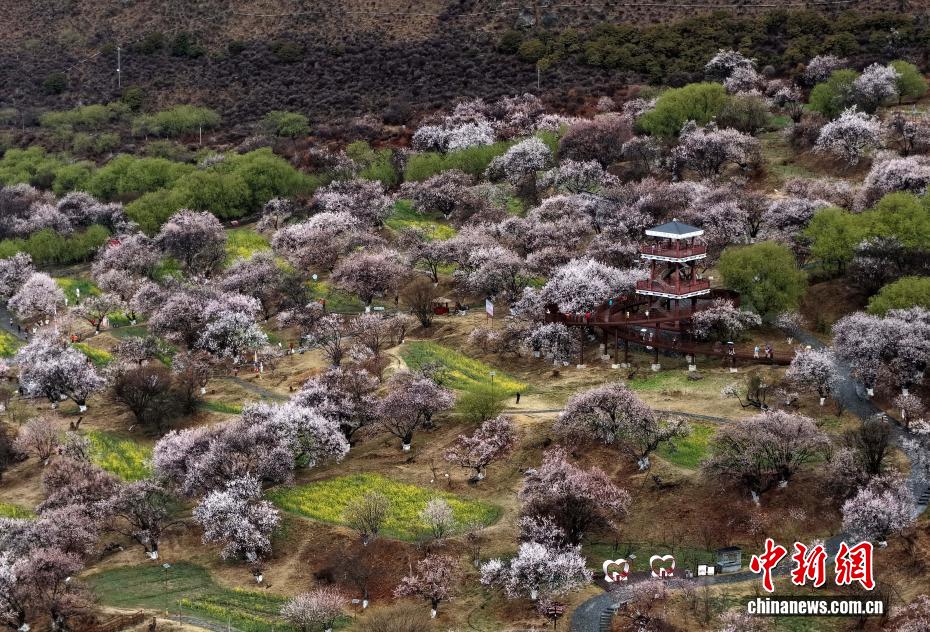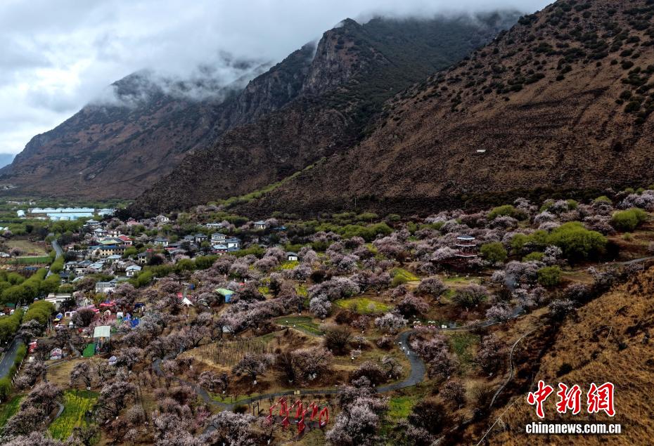 3月27日,西藏林芝市巴宜區(qū)嘎拉村桃花美景。時(shí)下,西藏林芝市的千余株野生桃樹次第綻放,美不勝收。(無(wú)人機(jī)照片)中新社記者 李林 攝