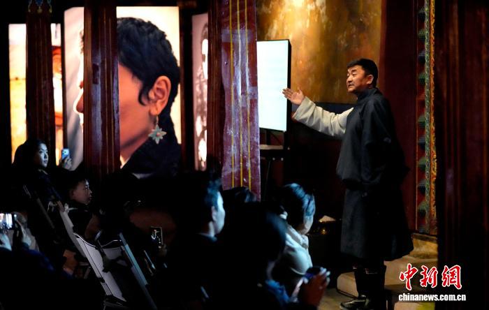 圖為藏戲研究專家、西藏自治區(qū)藝術(shù)研究所副研究員桑吉東智博士為觀眾梳理藏戲發(fā)展的歷史坐標(biāo)與藝術(shù)特征。李林?jǐn)z