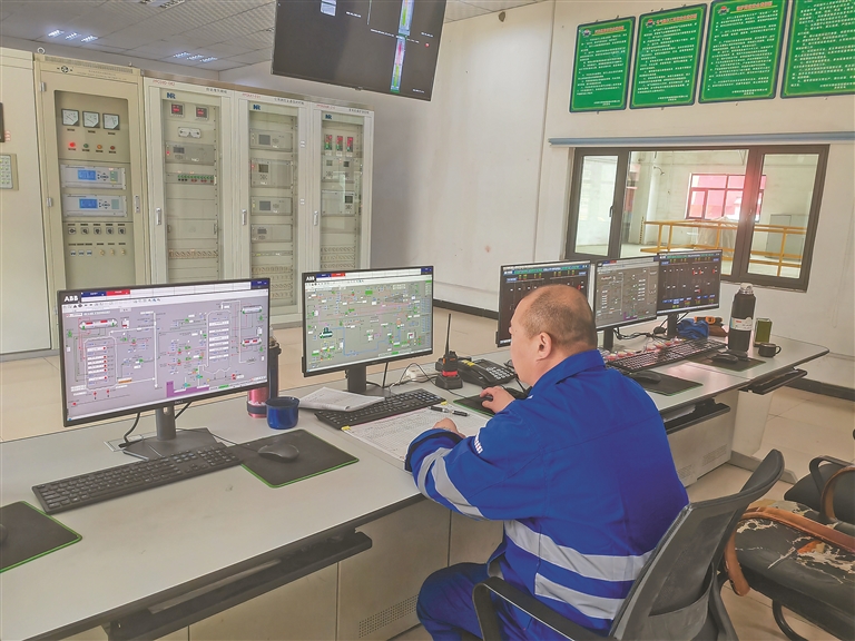 電氣車(chē)間工作人員在巡檢設(shè)備。