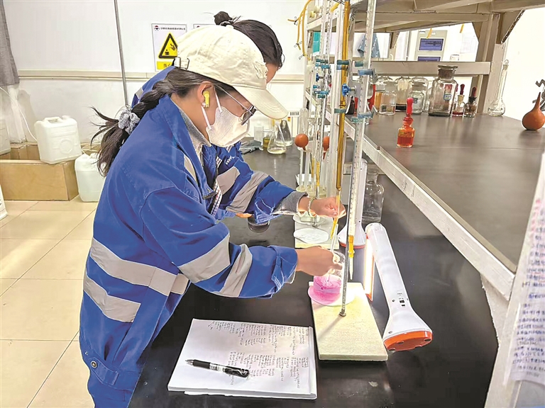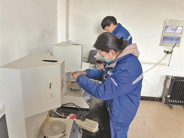 質(zhì)檢科工作人員在檢測(cè)出廠(chǎng)水泥品質(zhì)。記者 楊小娟 攝