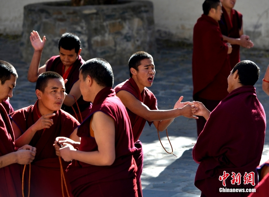 12月4日,扎什倫布寺僧人辯經(jīng)。中新社記者 李林 攝