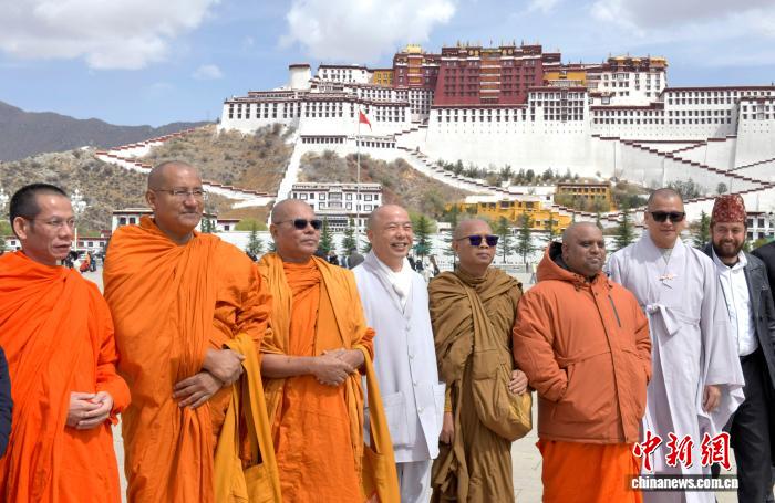 4月22日,由印度、俄羅斯、韓國、蒙古國、老撾等9個國家的宗教人士組成的19人參訪團(tuán)在西藏拉薩參訪。圖為參訪團(tuán)在布達(dá)拉宮廣場拍照留念。李林 攝