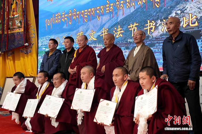 頒獎(jiǎng)儀式上,色拉寺分院為獲獎(jiǎng)?wù)呔传I(xiàn)哈達(dá)、頒發(fā)榮譽(yù)證書,以表彰他們?cè)诓匚臅ㄋ囆g(shù)上取得的成就?;顒?dòng)不僅為僧人提供了展示才華的舞臺(tái),也為藏文書法的傳承與發(fā)展注入新活力。