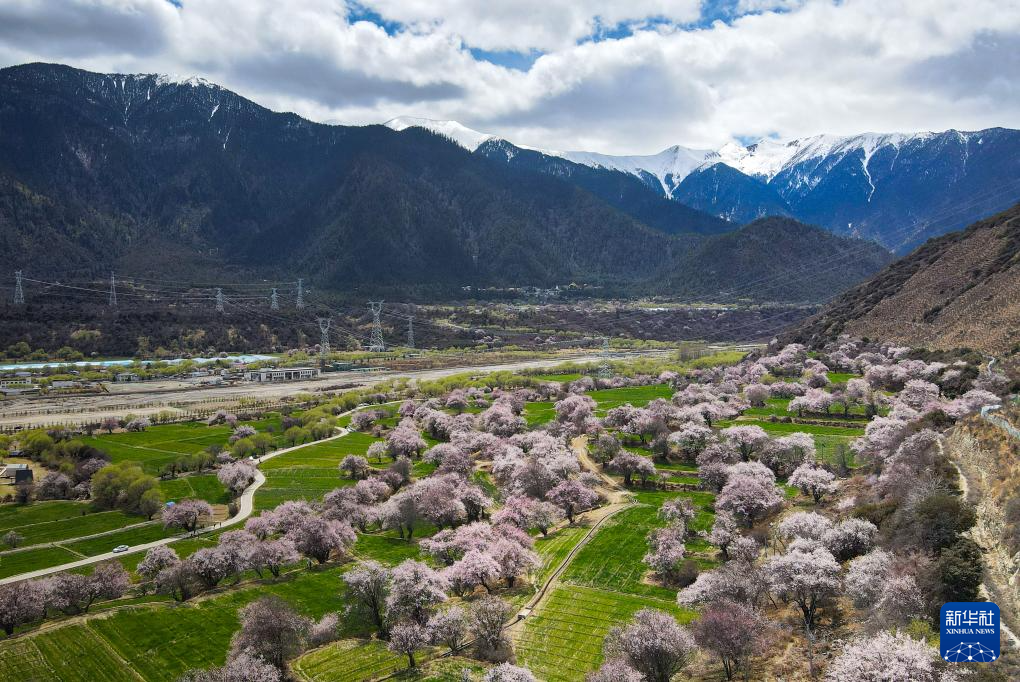 林芝市巴宜區(qū)朵當(dāng)村盛開的桃花(3月30日攝,無人機(jī)照片)。新華社記者 丁增尼達(dá) 攝