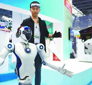 在全國大眾創(chuàng)業(yè)萬眾創(chuàng)新活動周北京會場主題展上,工作人員在展示一款仿生機(jī)器人。新華社發(fā)