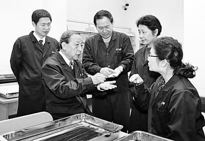李學(xué)勤(左二)研究團(tuán)隊(duì)正在研究清華簡。資料圖片