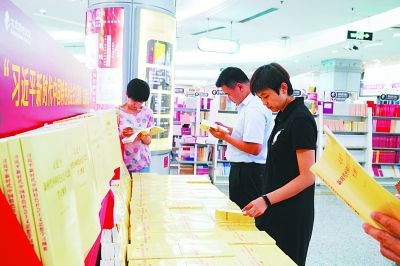 為配合“不忘初心、牢記使命”主題教育,北京圖書大廈專門設(shè)立《習(xí)近平新時(shí)代中國(guó)特色社會(huì)主義思想學(xué)習(xí)綱要》圖書專臺(tái),連日來(lái)深受讀者喜愛(ài)。圖為7月25日,讀者正在認(rèn)真閱讀《習(xí)近平新時(shí)代中國(guó)特色社會(huì)主義思想學(xué)習(xí)綱要》一書。本報(bào)記者 閆匯芳攝/光明圖片