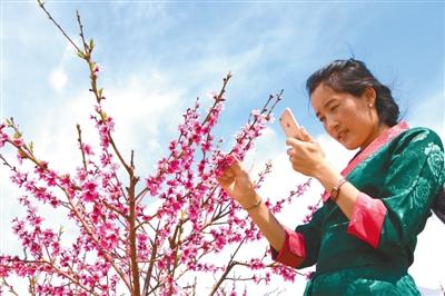圖為市民在觀賞桃花。格桑倫珠 裴聰 攝