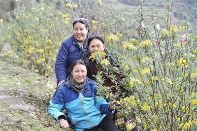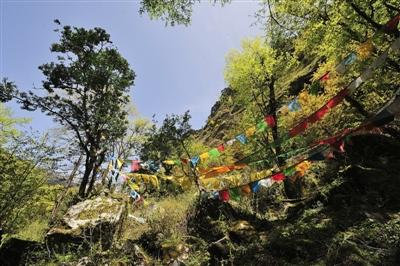 來自成都的格桑拉春和丹巴熱杰相互攙扶著往山上走。這次勒布溝之行,是女兒看到了西藏商報上的消息,特地給他們報的名,女兒說,就當母親節(jié)送給母親的禮物。