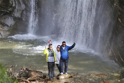25歲的巴桑扎西趁著休假,帶著父母參團來勒布溝旅行。13日剛好是母親節(jié),一路上他或是抱著母親拍照,或是在路不好走的時候攙扶母親,一家人其樂融融,濃濃的親情感染著大家。