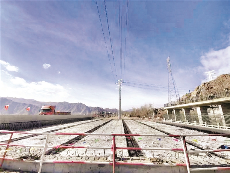 12月14日,西藏拉薩東環(huán)線項(xiàng)目橋梁梁板架設(shè)工作已全部完成。圖為施工現(xiàn)場。 記者 貢嘎來松 攝