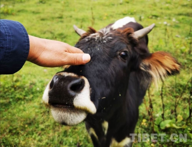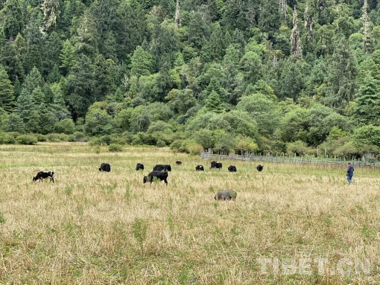 森林邊有一片大大的牧場,我靜靜地躺下來。牧場遠(yuǎn)處有牦牛在吃草,聽村民講這是野牦牛,因為這里絕少有人來,它們對人也沒有恐懼。