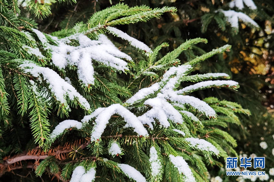 樹(shù)梢上落滿了雪花。新華網(wǎng)發(fā)(張海東攝)