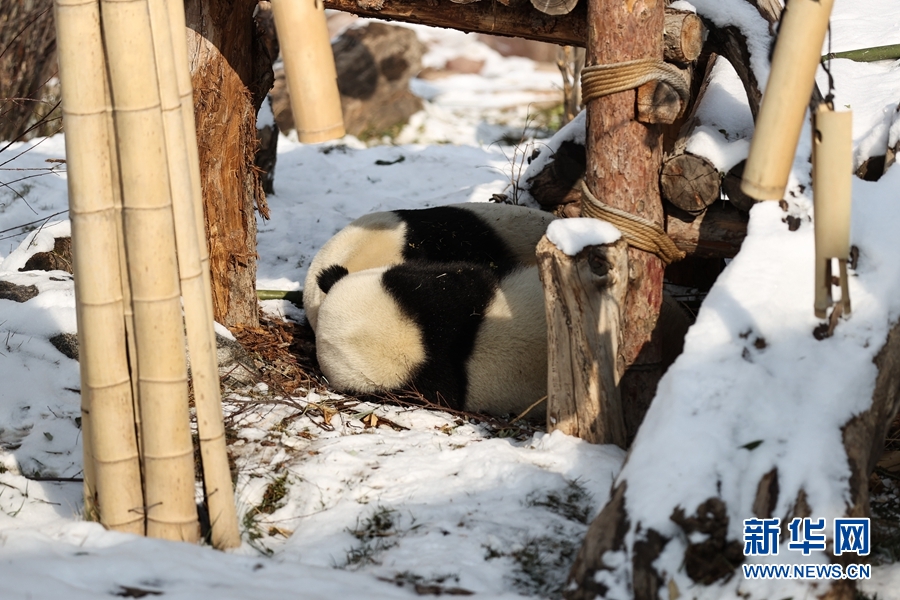 近日,受冷空氣影響,青海省西寧市迎來(lái)降雪。西寧熊貓館的四只大熊貓?jiān)谘┨炖锵硎苤灾褡?、“打盹兒”的?lè)趣。