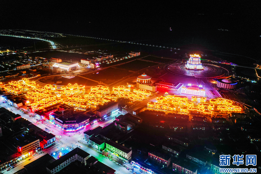 夜幕下的剛察縣燈火通明。新華網(wǎng)發(fā)(董松松 攝)