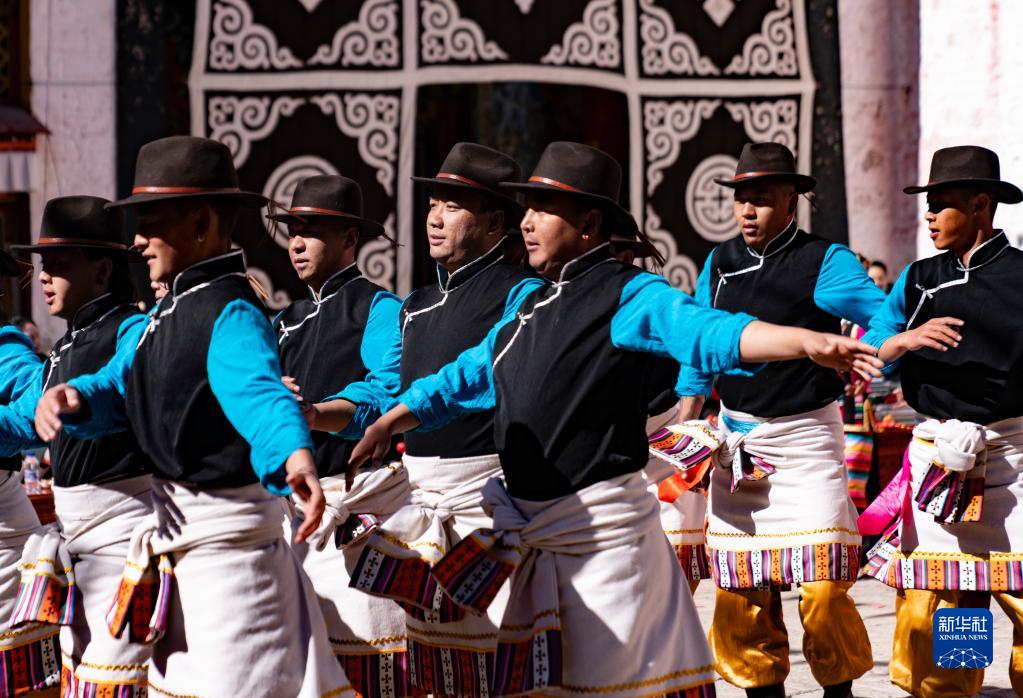1月26日,活動(dòng)現(xiàn)場(chǎng)的群眾載歌載舞,迎接春節(jié)、藏歷新年。新華社記者 普布扎西 攝